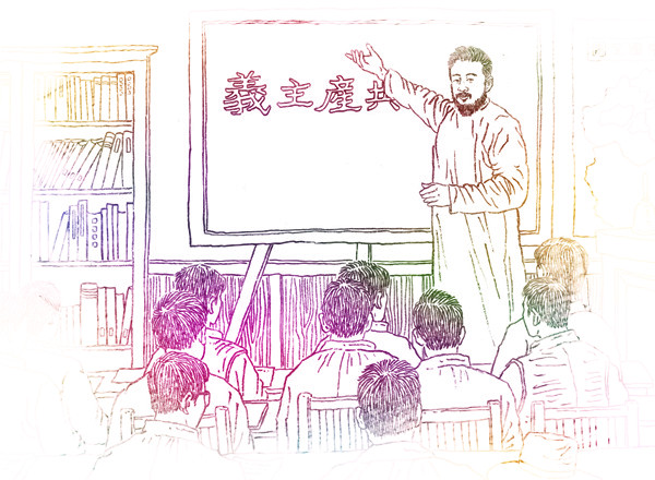 1920年,道外区二十道街路南东华学校的课堂上,客座教师马骏慷慨激昂的讲述,在学生们心中埋下了共产主义思想的火种。