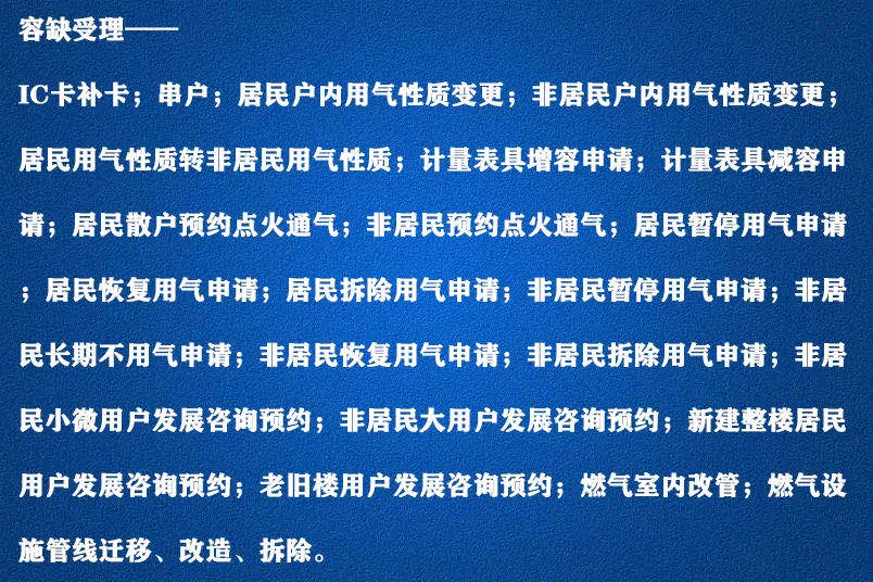 在推行“办事不求人、一站式服务”改革中,哈尔滨中庆燃气有限责任公司着力打造“亲民便民利民”窗口形象。窗口50项“办事不求人”事项包括业务流程、业务受理范围、申请渠道、办结时限、收费标准、服务及监督电话等。此次改革,立足避免群众办事多腿跑,最大程度实现群众办事“一门、一窗、一次”。同时,群众也可拨打中庆燃气24小时服务电话96377,进行燃气业务的咨询、建议和投诉。