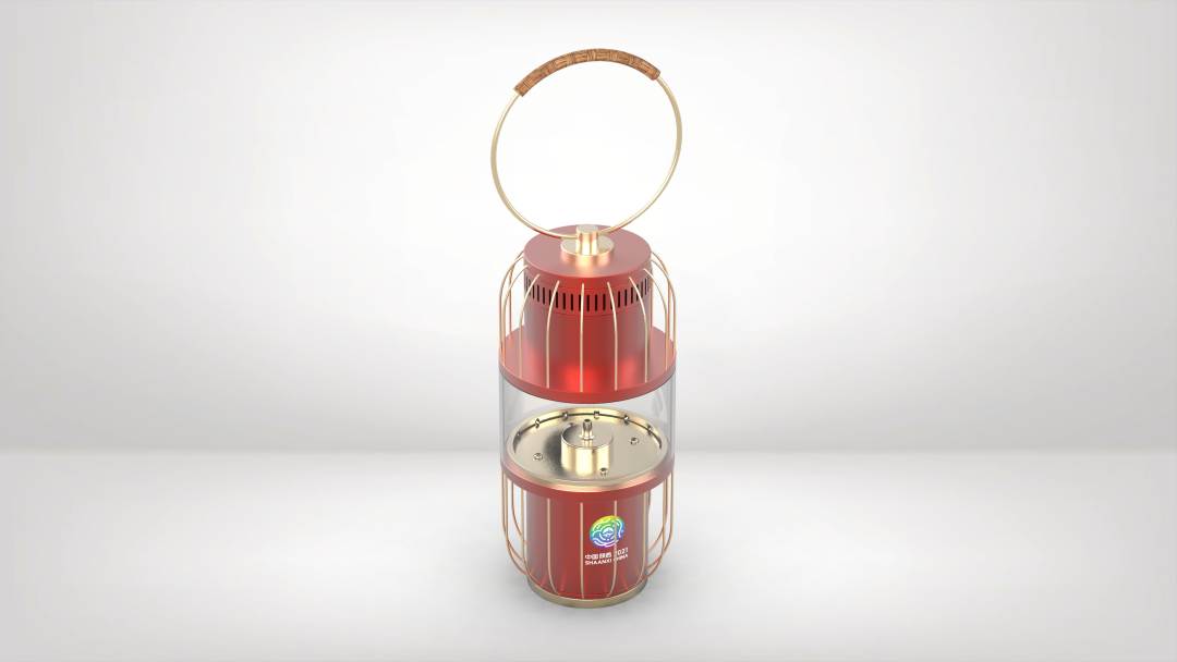 设计理念:火种灯造型灵感来自于中国传统灯笼,筒体形态规整饱满,象征着吉祥美好、团聚合美之意。灯笼是中国传统节日用品,每逢重大节日、良辰喜庆之时,家家户户都会挂起圆圆的大红灯笼,可以说它是我们中华民族重要的传统文化符号之一。采用红灯笼作为火种灯的造型来源,也象征着在火炬传递过程中传递光明和希望。在设计细节上,火种灯周身由14根骨架支撑,象征着中华人民共和国第十四届运动会。提手处采用陕西关中草编这一非遗技艺,体现了传统文化和现代工艺的巧妙结合。同时圆形这个元素在整体造型中多次出现,也包含了圆满、和谐、团圆等人文蕴意,进而呼应火种灯——“圆梦”这个主题名称,也体现了对十四运会盛会最美好的祝愿。