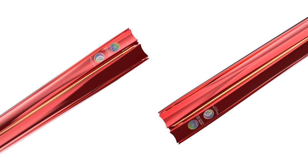 设计理念:采火棒运用仿生设计方法,造型灵感源于红百合花的绽放姿态,六朵花瓣呈三角形态,内倾上扬,拥簇金色柱芯交织环绕。采火口处的六个节点向外延展,伸出六条金色花蕊,展现出红百合花缓缓盛开之势,棒身下方握柄处运用天青色,与上部分的红色形成鲜明对比,轻盈明快,充满活力。