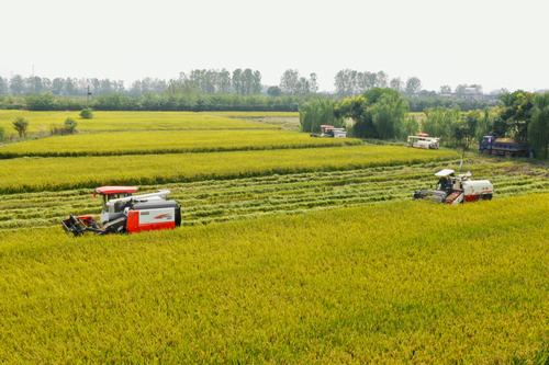 巢湖岸边收稻忙。(新华社记者汤阳摄)