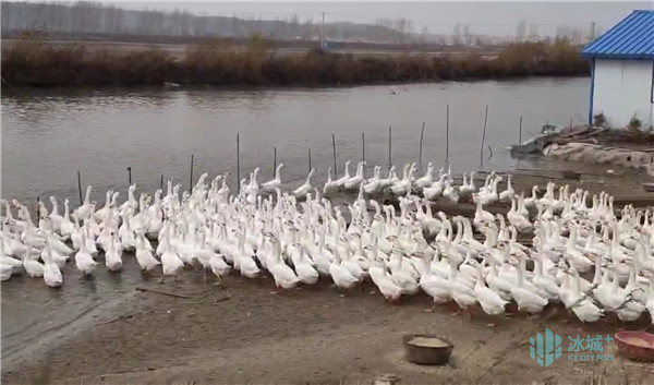 三年前,在外打工多年的王震带着妻子回到了木兰老家,信心满满地创业,当起了“鹅司令”。曾多年在养殖场打工,王震夫妇积累下了丰富的养鹅经验,他们心里非常有底。2020年,王震租下村后一处水塘,养了800只白鹅。为了保证肉质鲜美,王震拒绝饲料喂养,他每天起早贪黑割青草,草浆浸入手掌皮肤,老茧也布满了双手,可看到大白鹅吃得欢,王震露出了欣慰的笑容。“落雪似银河,铁锅炖大鹅”,当年入冬后一周内,800只鹅就被抢购一空。王震一算账,800只大鹅挣了48000多元。第二年,王震把60亩水塘全都租了下来,又流转了周边的50亩农田,把大鹅养殖数量提高到1500只,赶上当年行情好,每只大鹅卖到180元。今年,王震把养殖规模又提高到了3000只,他将利润目标定在了30万元。