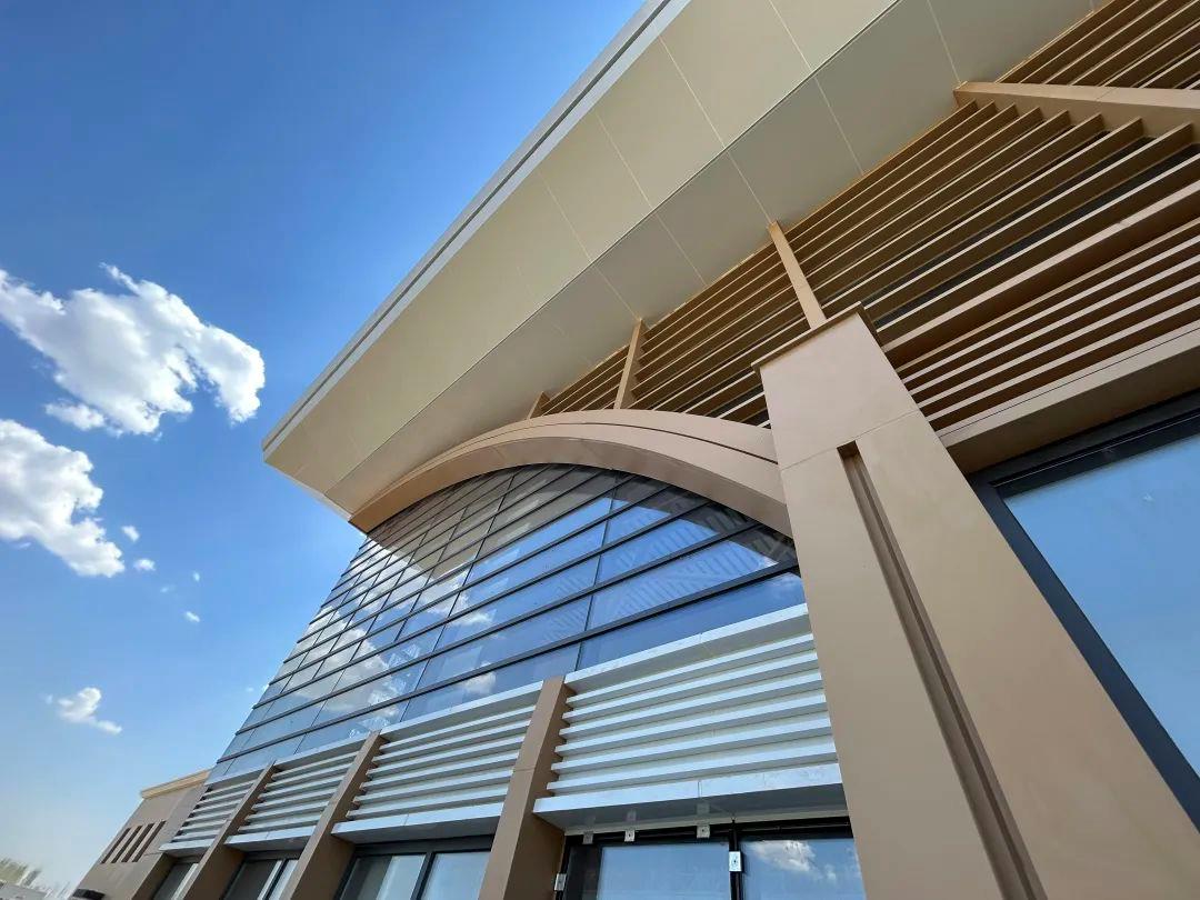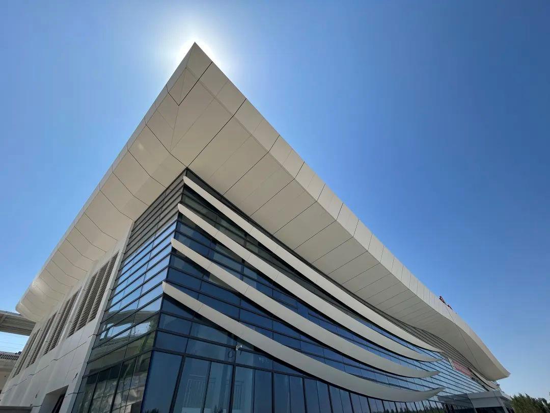 站房建筑立面以“临空门户、展翅腾飞”为寓意,力图打造永定河畔的一座永清新地标。