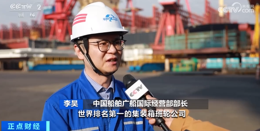 中国船舶广船国际经营部部长 李昊:通过在绿色环保方面的优势,吸引全球各地的船东来我们这里下订单,交付时间已经排到2027年甚至2028年。