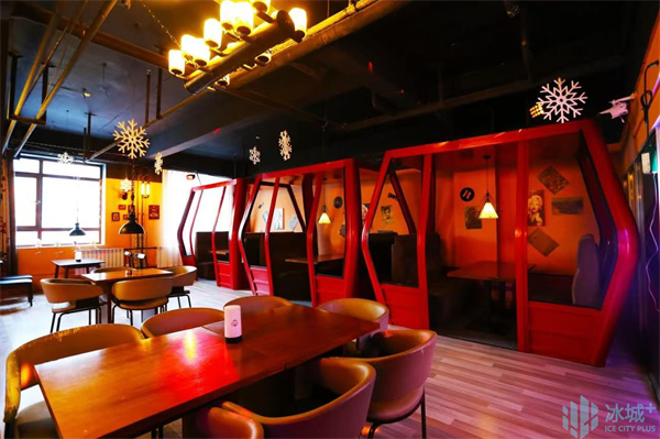 缆车酒吧是亚布力阳光度假村滑雪场的另一大亮点。这家位于亚布洛尼假日酒店一楼的酒吧,以复古缆车造型的卡座和柔软的皮质座椅为特色,为游客提供了浪漫的用餐和娱乐环境。在这里,游客可以一边品尝美酒,一边欣赏窗外的雪景,享受一场雪中的微醺之旅。
