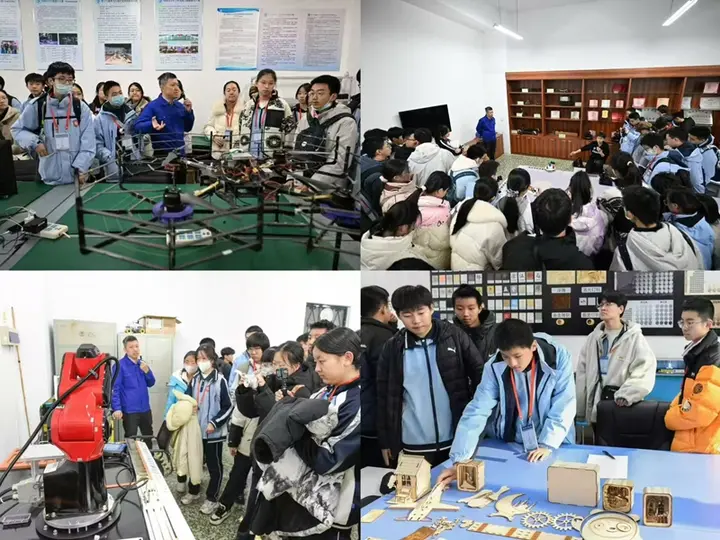 在先进切削与加工技术实验室,同学们参观了金属切削刀具馆,近距离接触机械工程实验的精密仪器,了解哈理工在断屑折断理论及刀具槽型设计技术、复杂刀具“形—性—用”一体化设计及智能管控技术等领域的突出贡献。在机械动力工程学院(工程训练中心),通过实验室教师及学生志愿者的详细介绍和观看机器人对战演示,同学们身临其境地感受到人工智能、机械工程等技术的魅力。