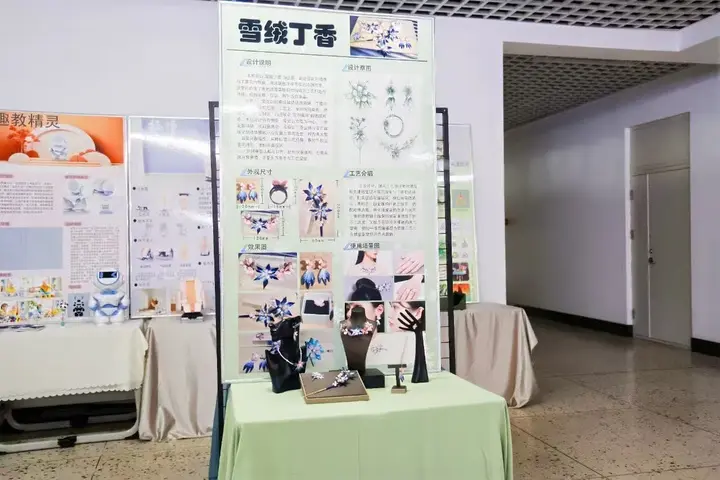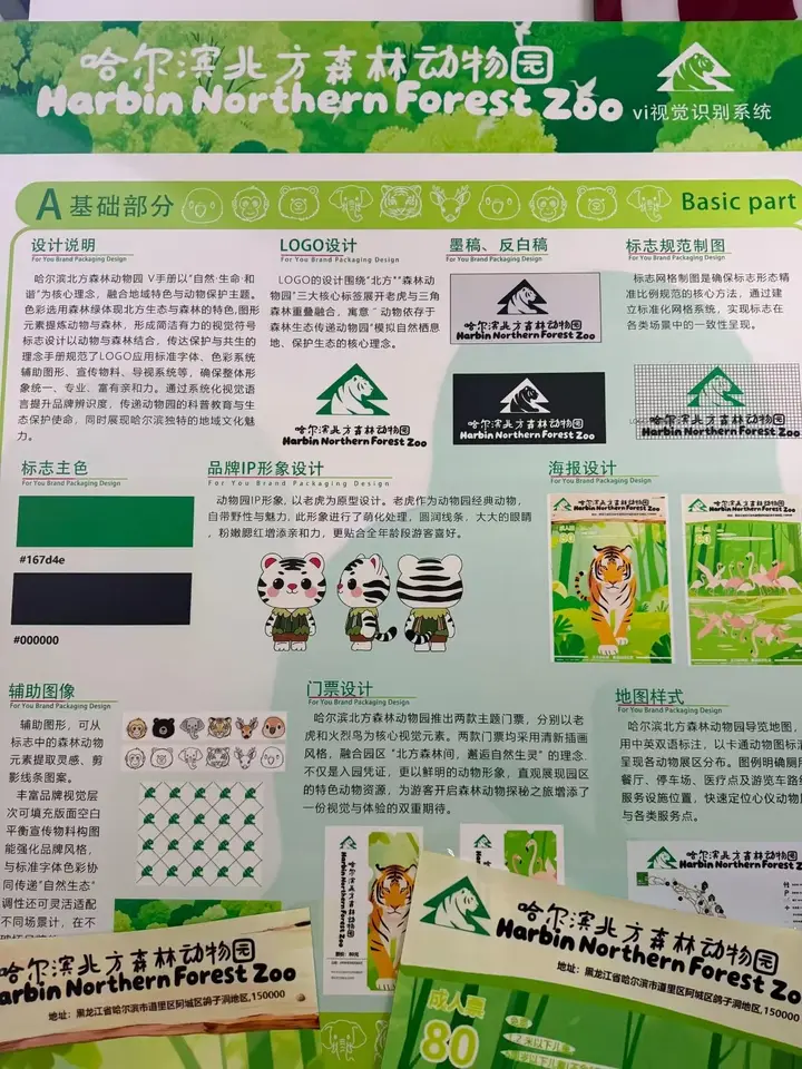 记者在展览现场看到,一组名为《雪绒丁香》的首饰吸引了不少目光。学生将哈尔滨的冰雪与市花丁香“佩戴”在身上。一位参与设计的学生说:“最难的不是画图,而是让作品既有地域文化的味道,又能被今天的人喜欢和佩戴。”另一项作品,是学生为哈尔滨北方森林动物园完成的整套品牌设计。从Logo、IP形象到门票、地图,学生们需要模拟真正的设计公司,考虑品牌传播、游客体验和实际制作规范。负责IP形象设计的同学坦言,“老师给的意见很直接,要‘可爱,让人想合影’,这让我们明白,设计不能只停留在自己觉得好看。”